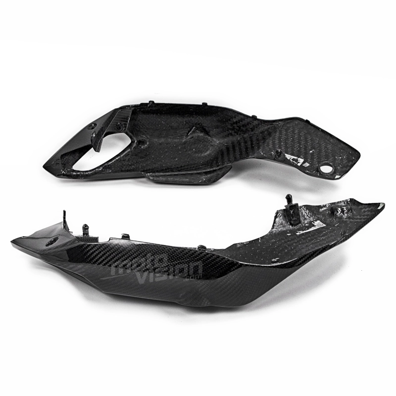 Moto Vision conçoit les différentes pièces en carbone à partir de moules en acier issus des carénages d'origine. Les produits sont faits à la main. Chaque produit est conçu à l'identique de l'original, pour vous assurer un montage facile et rapide sur les points de fixation d'origine.