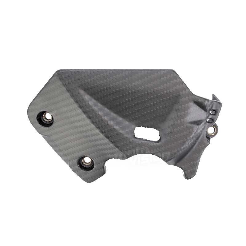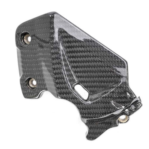 Cache pignon de sortie de boite carbone Ducati Hypermotard 950 2019-2020, livré sans visserie ou autres fixations. Les perçages sont déjà effectués sur les carénages moto en carbone.