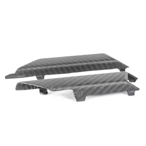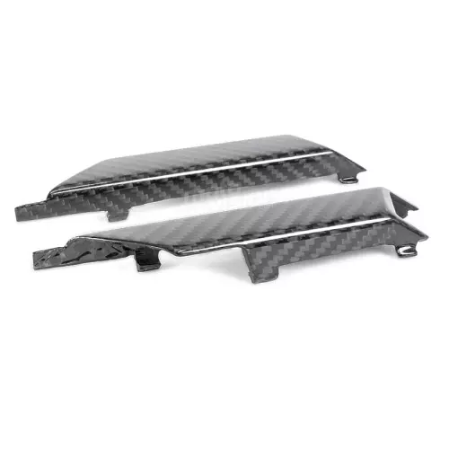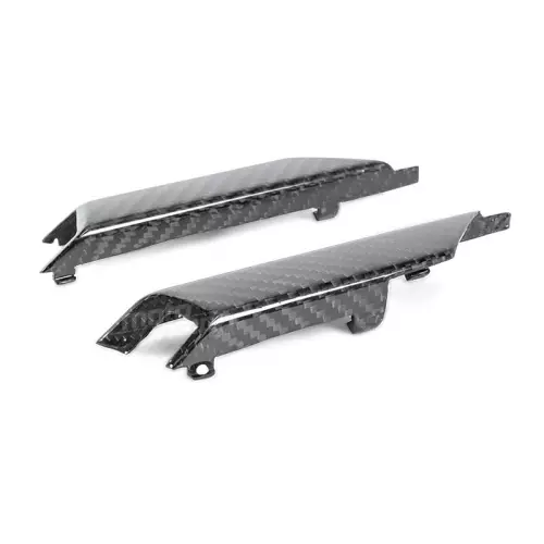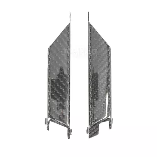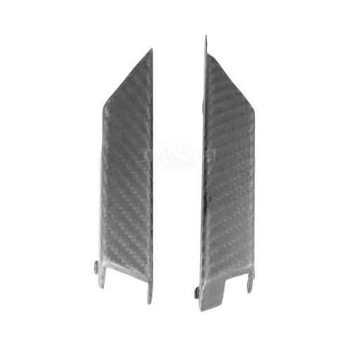 Caches sur tube de fourche carbone vernis BMW F800GS 2014-2018, livré sans visserie ou autres fixations. Les perçages sont déjà effectués sur les carénages moto en carbone. Les pièces sont disponibles en vernis brillant ou mat.