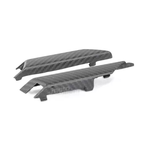 Caches sur tube de fourche carbone vernis BMW F800GS 2014-2018 à monter directement sur les points de fixation d'origine de votre moto en remplacement du carénage d'origine. Les pièces en carbone sont livrées sans visserie.