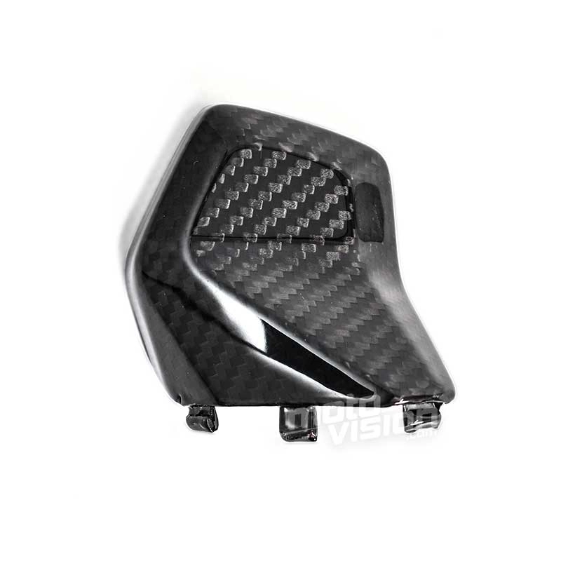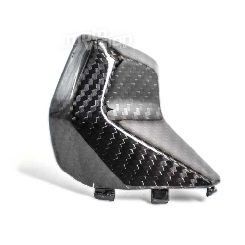 Cache compteur arrière carbone Yamaha MT09 2017-2020, livré sans visserie ou autres fixations. Les perçages sont déjà effectués sur les carénages moto en carbone. Les pièces sont disponibles en vernis brillant ou mat.