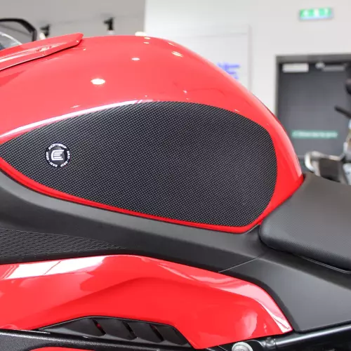 Grip de réservoir moto adhésif et antidérapant de la gamme Evo de Eazi-grip, prédécoupé spécifiquement pour S1000R/RR 2019-2021. Le produit est conçu pour vous donner un meilleur contrôle de votre moto en phase d'accélération ou de freinage tout en réduisant votre fatigue.