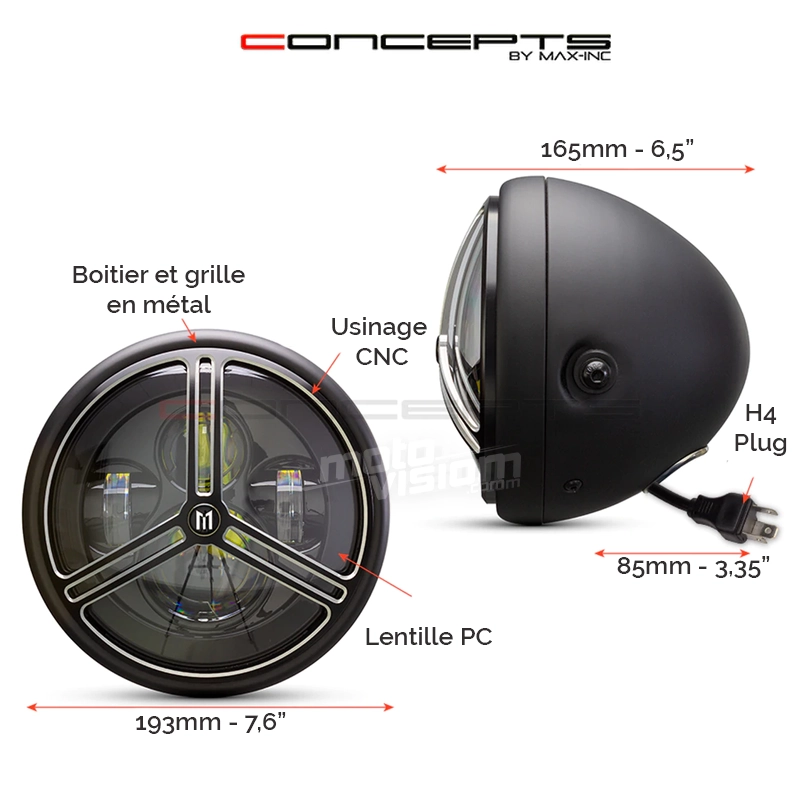 MAX INC CONCEPTS 7,7 POUCES MULTI-PROJECTEUR LED PHARE