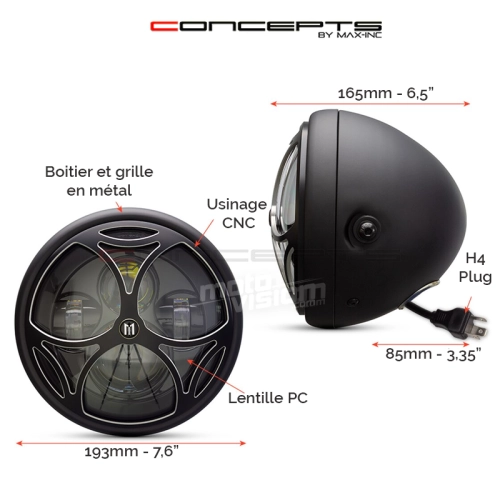 MAX INC CONCEPTS 7,7 POUCES MULTI-PROJECTEUR LED PHARE