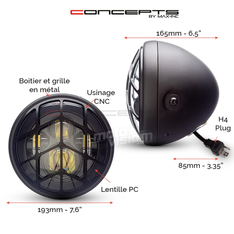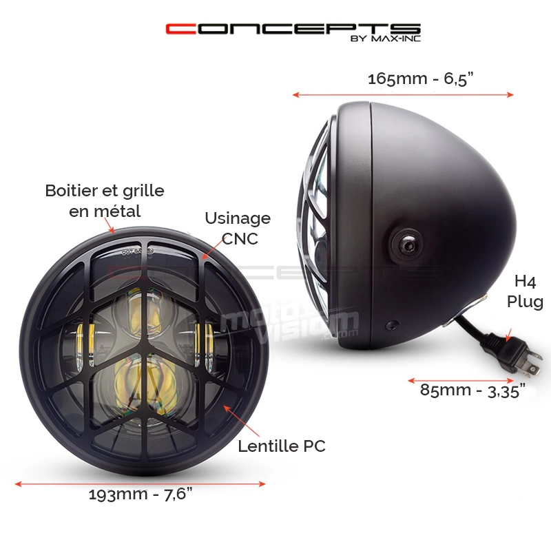 MAX INC CONCEPTS 7,7 POUCES MULTI-PROJECTEUR LED PHARE