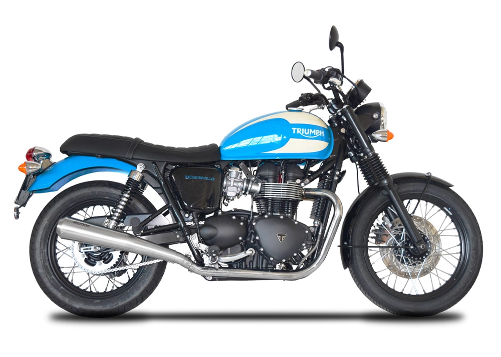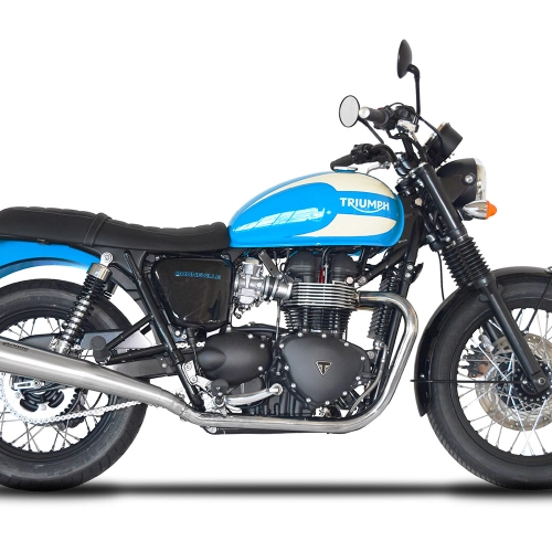Echappement SPARK Triumph BONNEVILLE T100 2009-2015 Modèle 70's / Inox traitement crémarique noir BLACK SERIES.