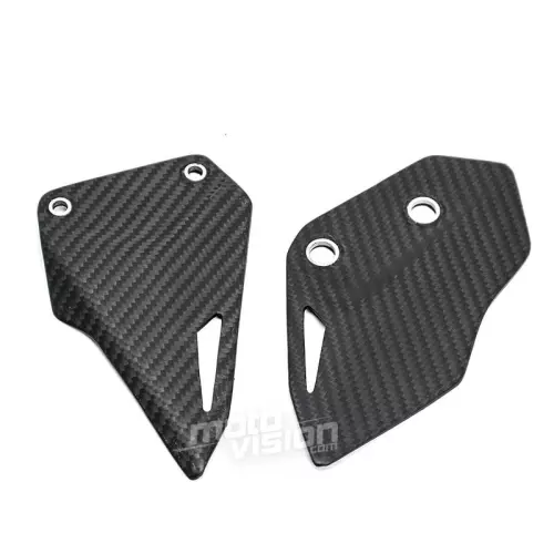 Paire de repose-pieds Carbone Mat Kawasaki H2SX H2SX SE, livré sans visserie ou autres fixations. Les perçages sont déjà effectués sur les carénages moto en carbone.