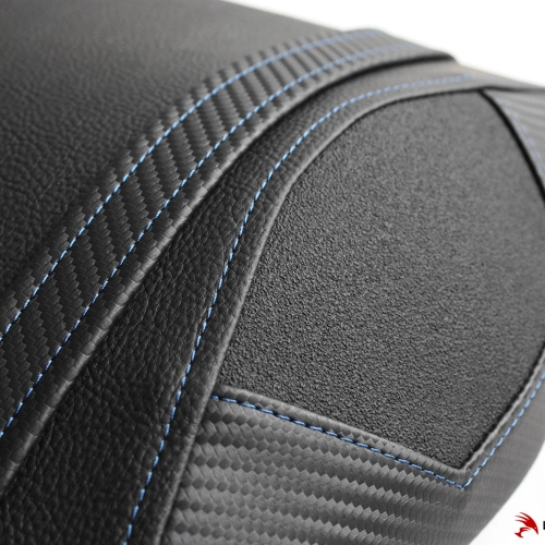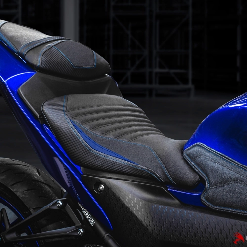 Couvre selle Yamaha R3 15-20 MT03 2020 R25 14-20 de très grande qualité, fabriquée au Canada. La marque conçoit des produits avec une superbe finition : broderies détaillées, vinyl de type marine, tissu style carbone ou encore cuir type Suède de qualité supérieure... Le design et les couleurs sont personnalisables afin de s'accorder au mieux au look de votre moto.