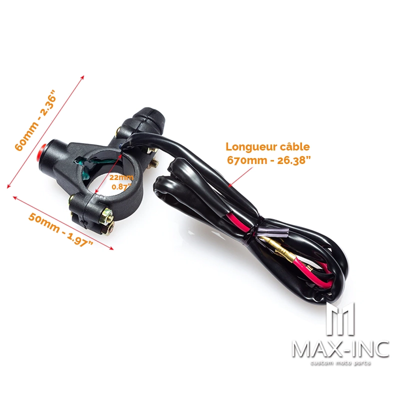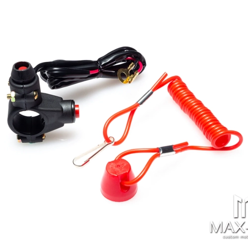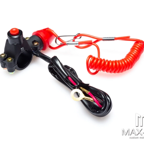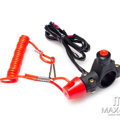 Cet interrupteur d'arrêt de moteur universel à montage sur guidon + cordon d'attache convient aux guidons de 22mm - 7/8"