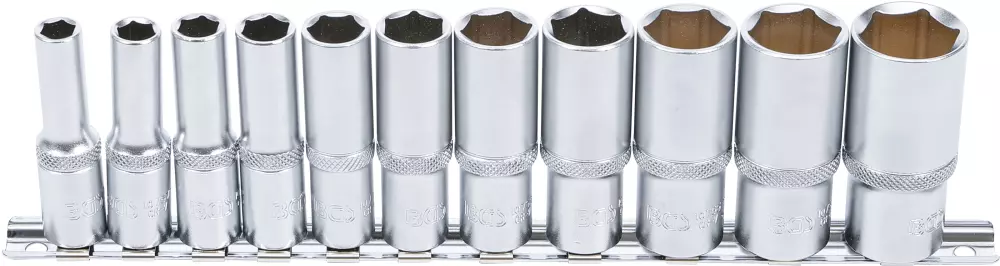 Jeu douilles six pans, profondes 10 mm (3/8") en pouce 11 pièces BGS