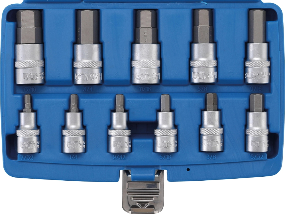 Jeu douilles à embouts 12,5 mm (1/2") six pans intérieurs 7/32" - 13/16" en pouce 11 pièces BGS