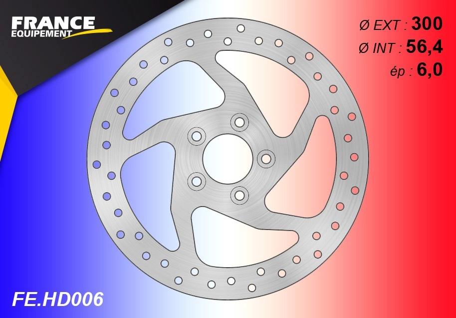 Disque de frein Gamme Essentiel FE.HD006 de diamètre extérieur : 300 mm, diamètre intérieur : 56,40 mm, épaisseur : 6,0 mm en remplacement de votre disque moto d'origine.