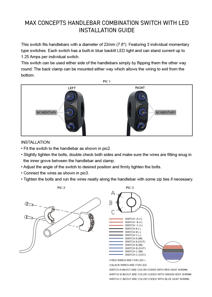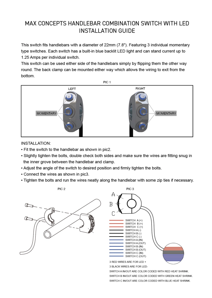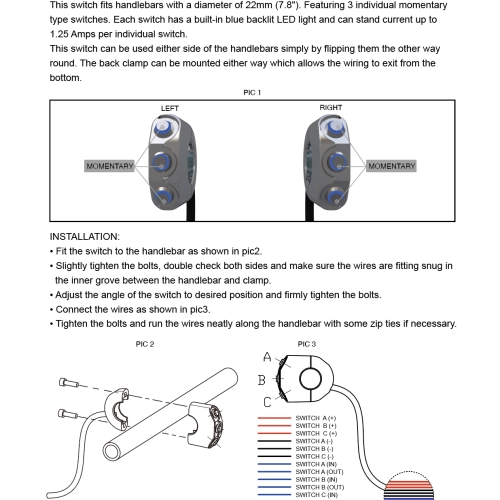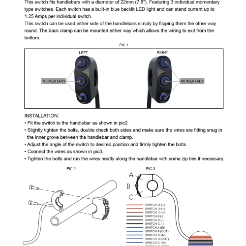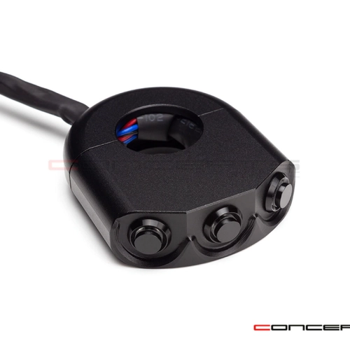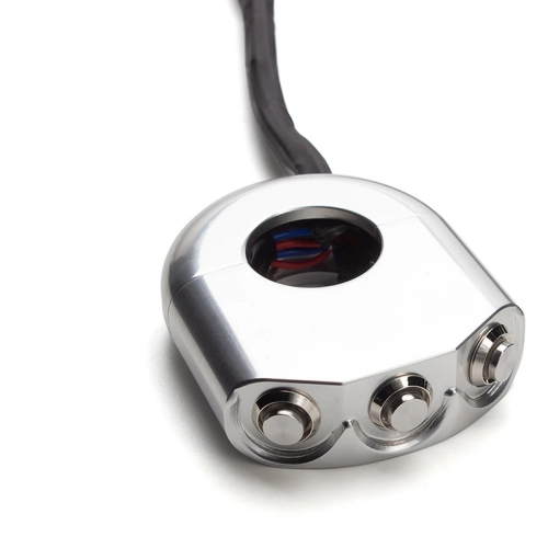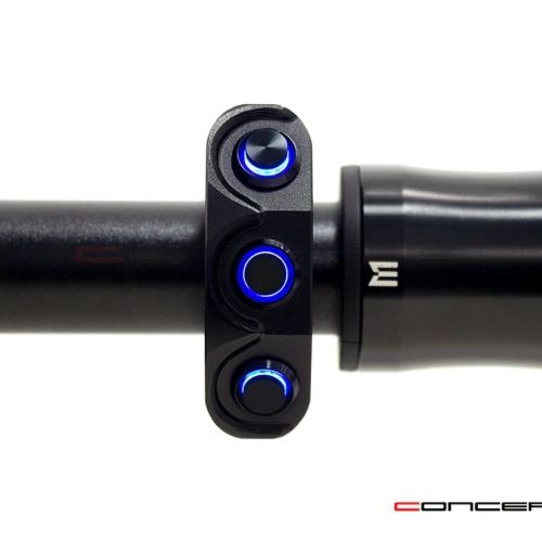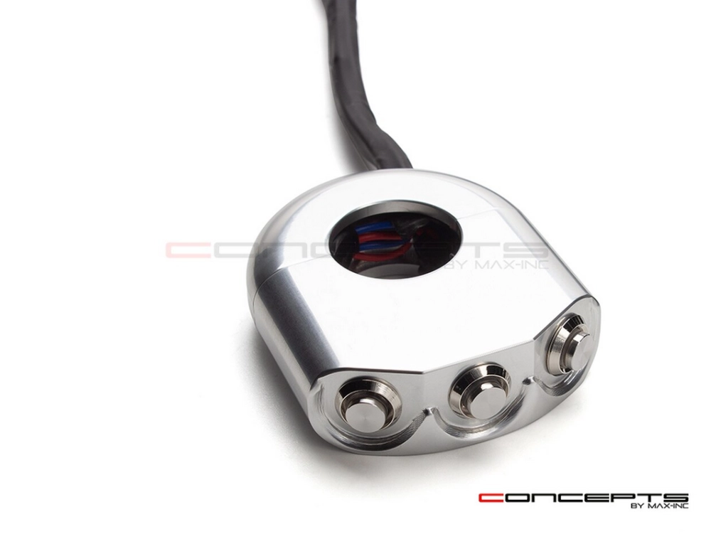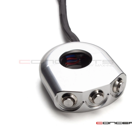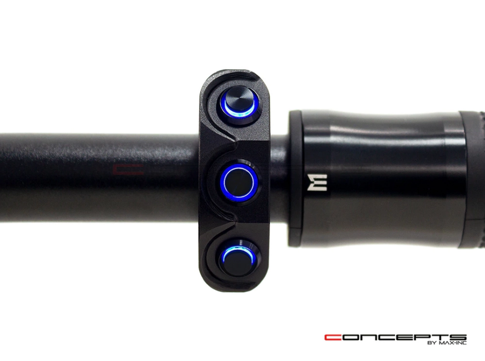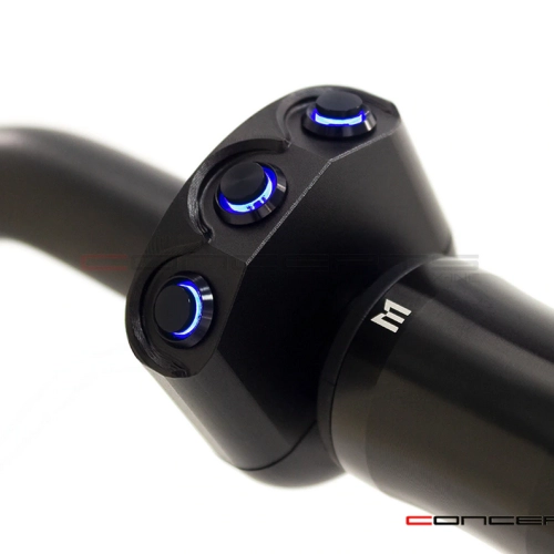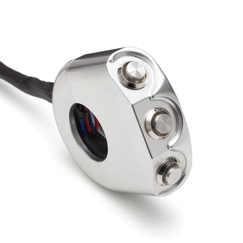 Commodo usiné aluminium CNC - 3 boutons poussoirs rétroéclairés. Cet interrupteur peut être monté sur le côté gauche ou droit de votre guidon simplement en le basculant.