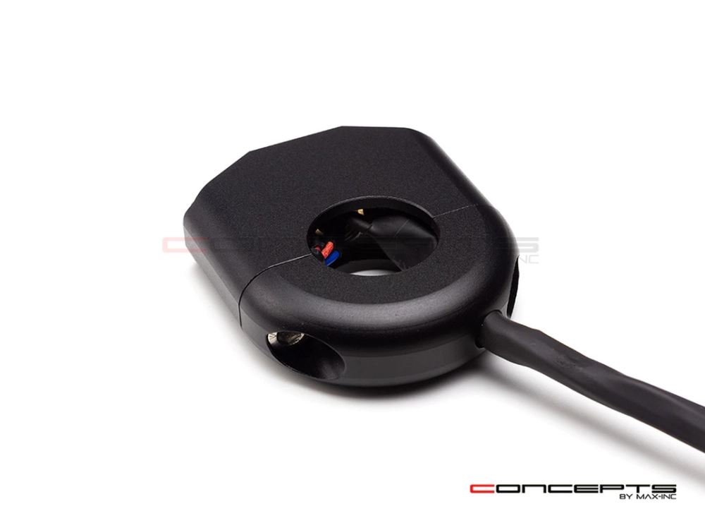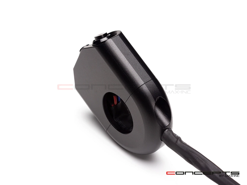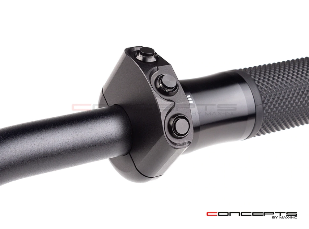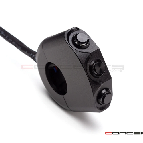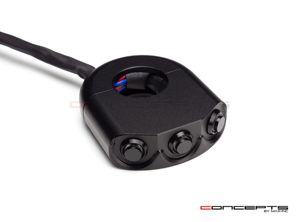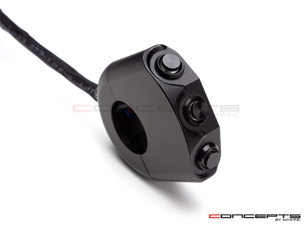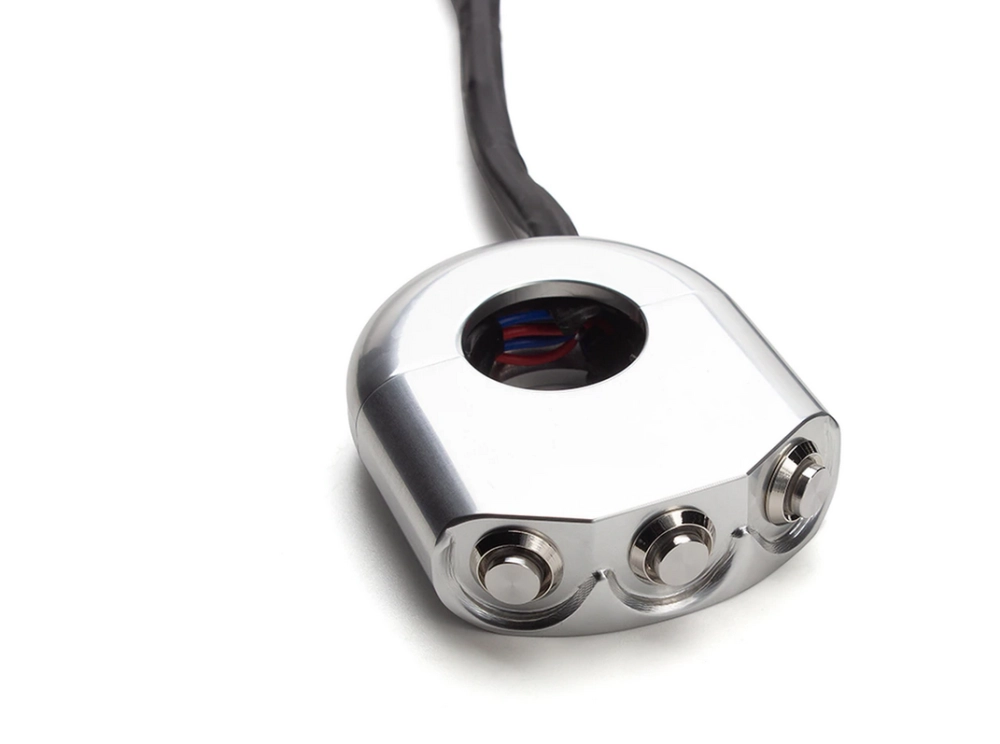 Commodo usiné aluminium CNC avec 3 boutons poussoirs rétroéclairés. Cet interrupteur peut être monté sur le côté gauche ou droit de votre guidon simplement en le basculant.