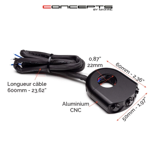 Caractéristiques Commodo 22mm aluminium CNC Max Inc