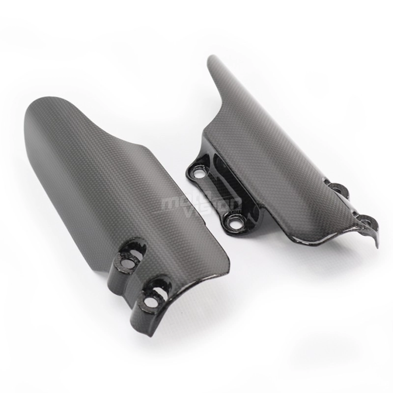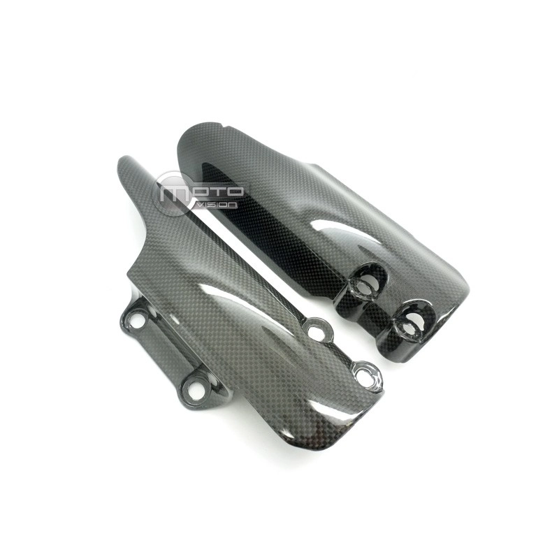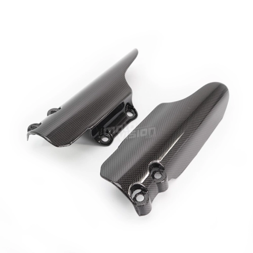 Cache fourche Carbone Ducati Scrambler Enduro, livré sans visserie ou autres fixations. Les perçages sont déjà effectués sur les carénages moto en carbone.