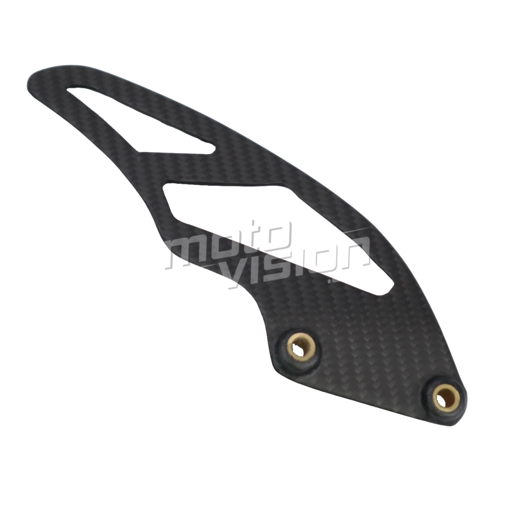 Guide chaine carbone Triumph Street Triple 660 et 765 2017-... , livré sans visserie ou autres fixations. Les perçages sont déjà effectués sur les carénages moto en carbone.