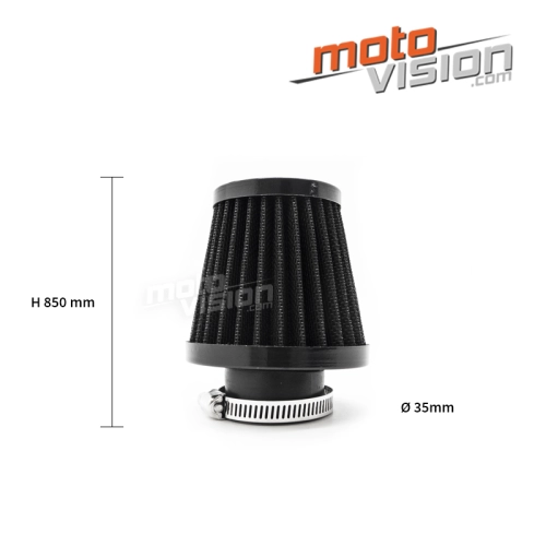 Idéal pour votre projet Cafe Racer, ce filtre à air conique noir de 35 - 36 - 37 mm de diamètre est vendu à l'unité.