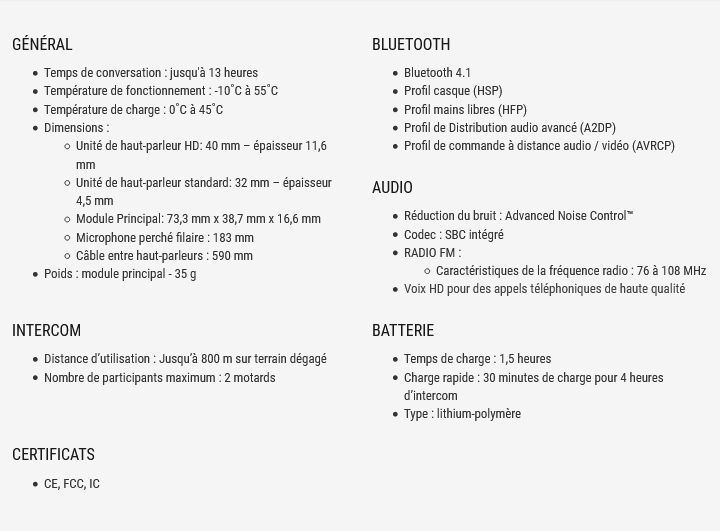 • Bluetooth 4.1 • Fixation rapide • Intercom 800 m • Conversation bidirectionnelle • Instructions vocales