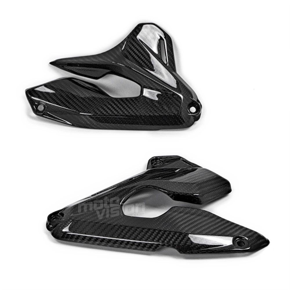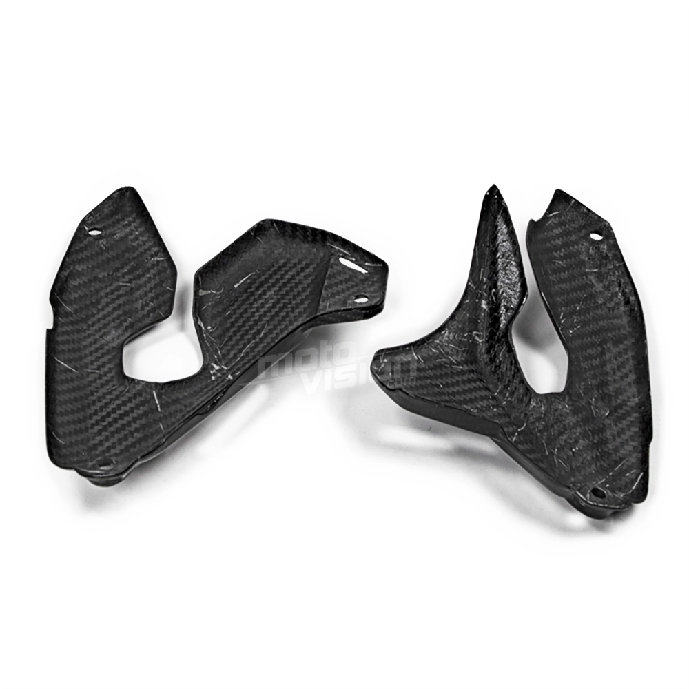 Paire caches moteur Carbone Ducati MONSTER 937, livré sans visserie ou autres fixations. Les perçages sont déjà effectués sur les carénages moto en carbone.