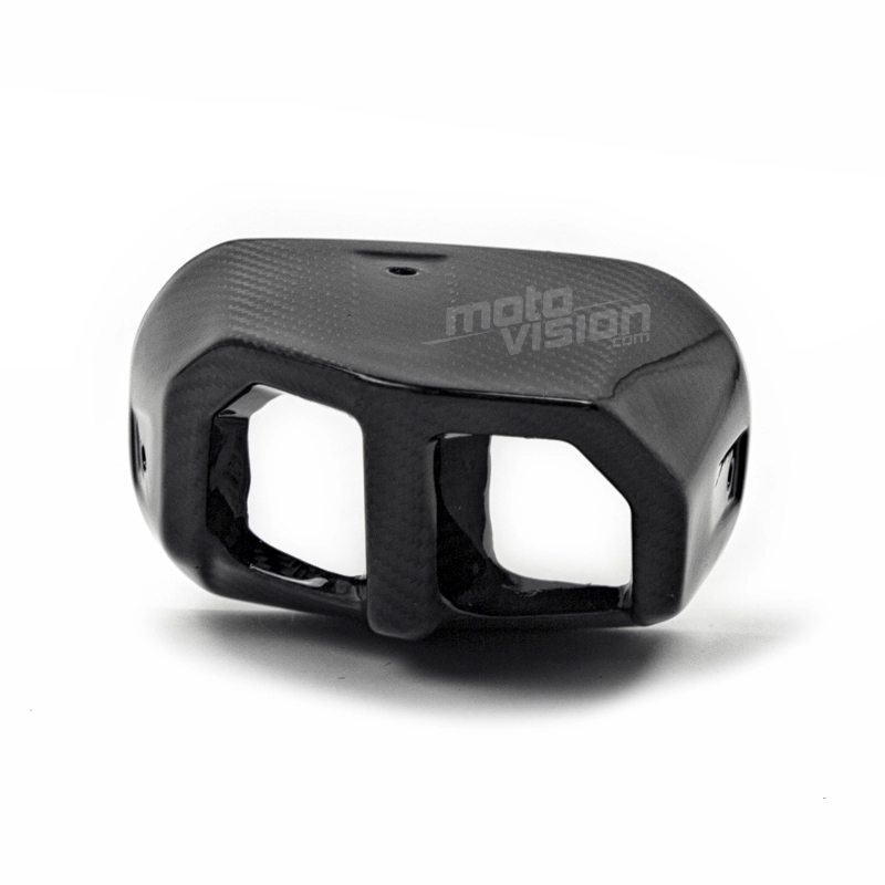 Cache pot (embout) carbone BMW F900R 2020- F900XR 2020-, livré sans visserie ou autres fixations. Les perçages sont déjà effectués sur les carénages moto en carbone.