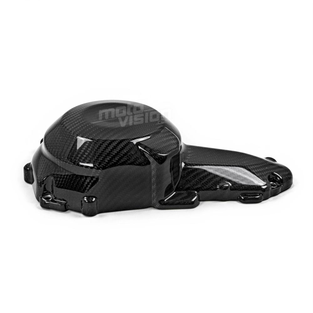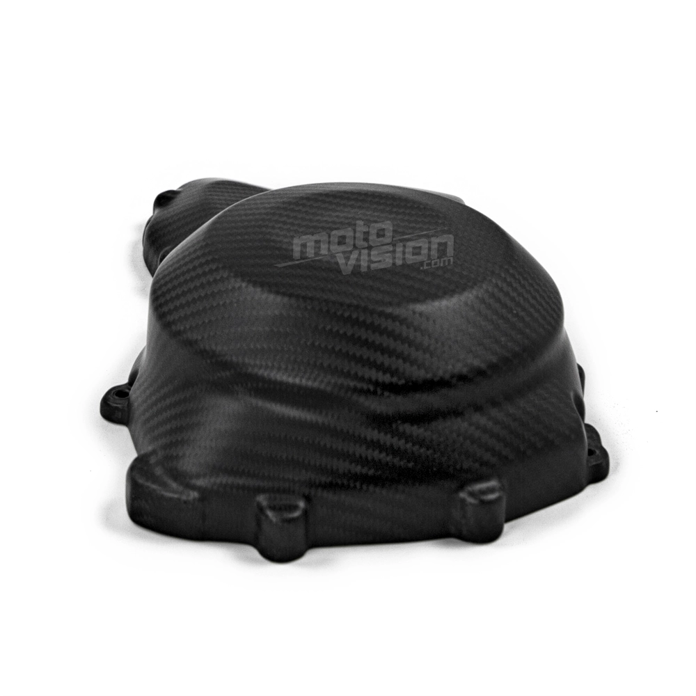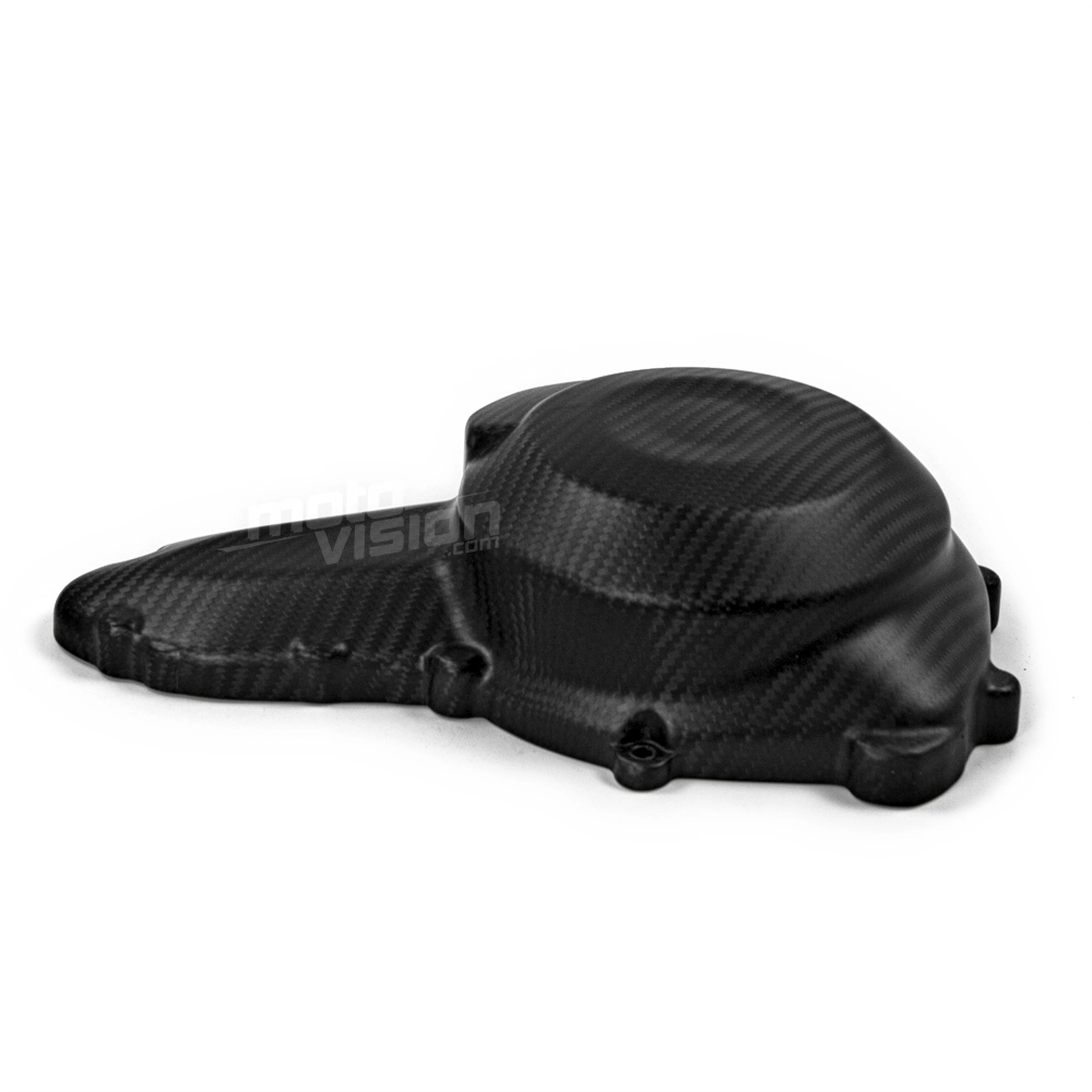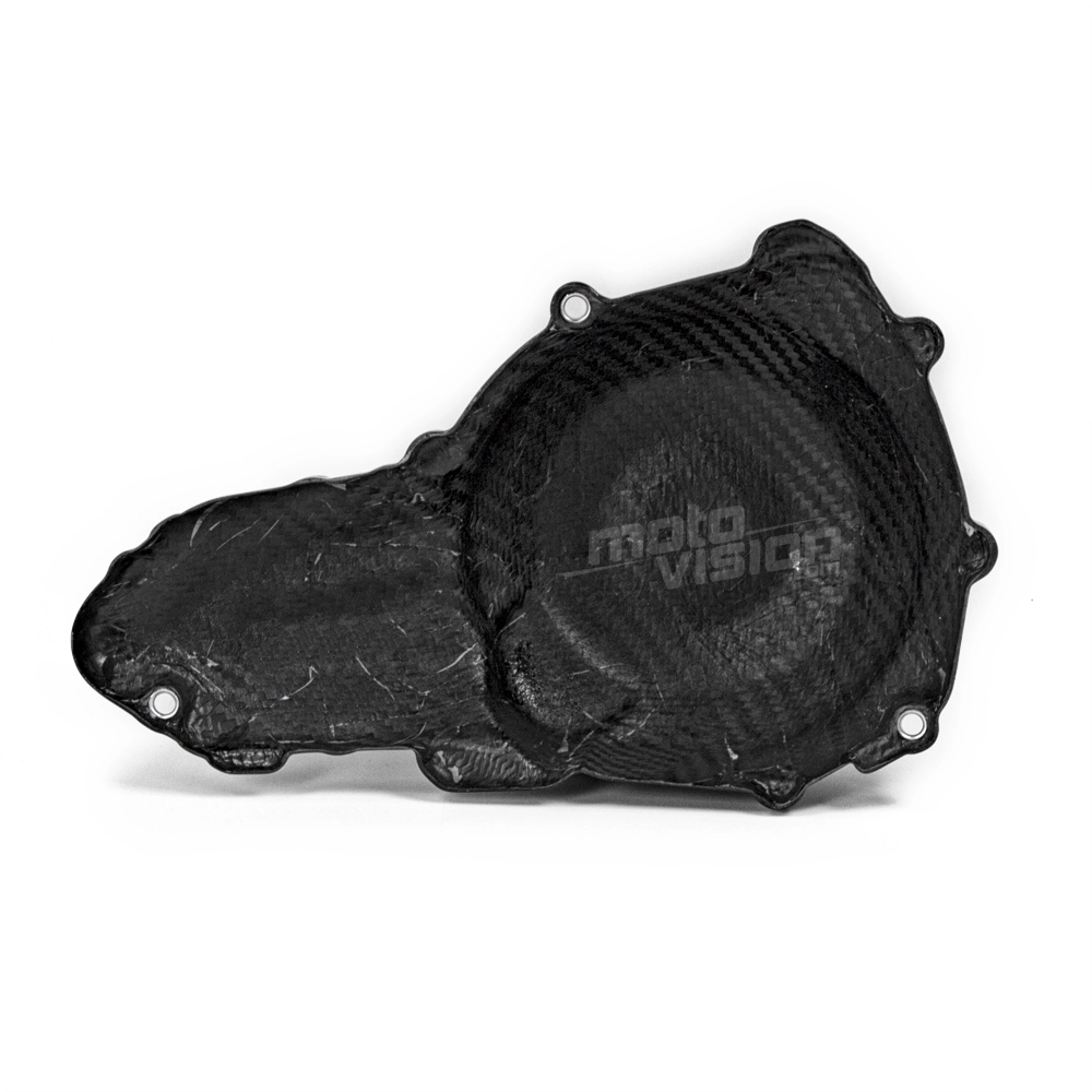 Cache carter d'alternateur Kawasaki Z650/Ninja 650 2017-2021, livré sans visserie ou autres fixations. Les perçages sont déjà effectués sur les carénages moto en carbone.