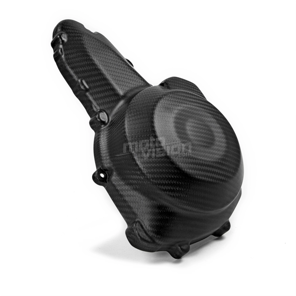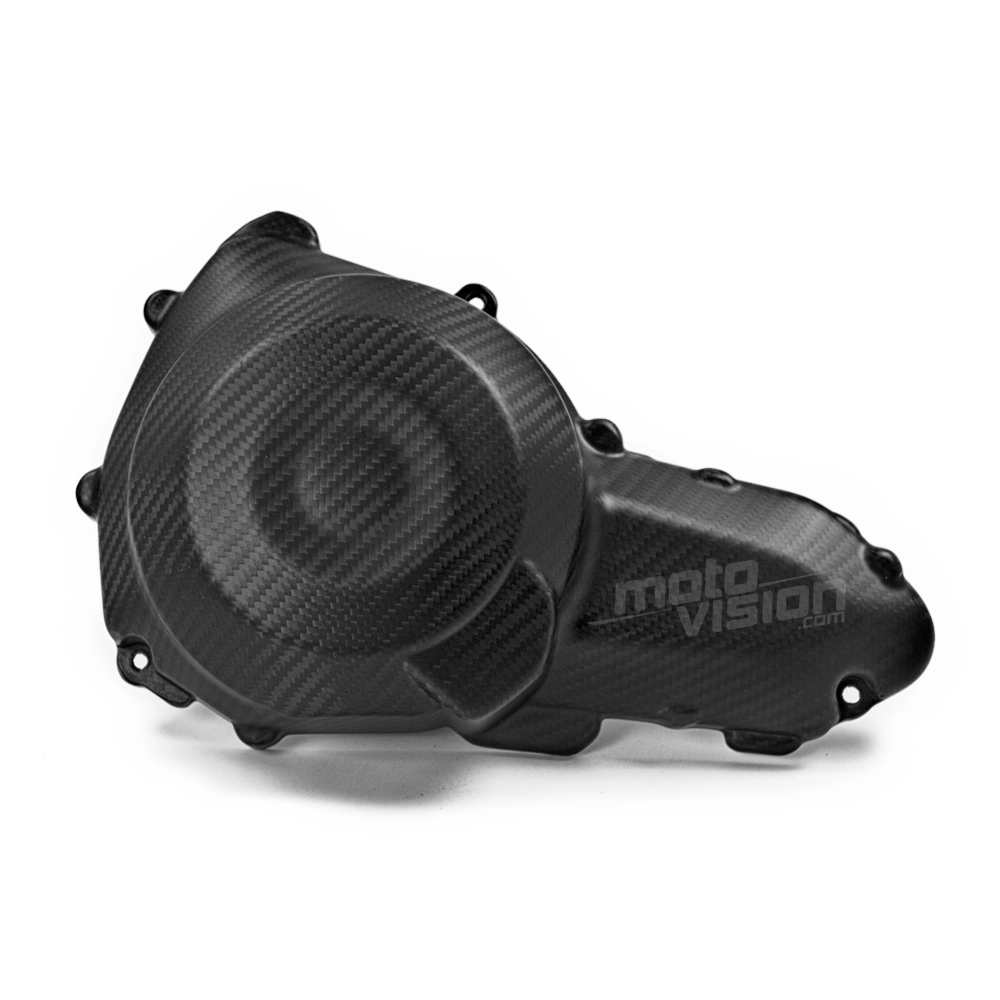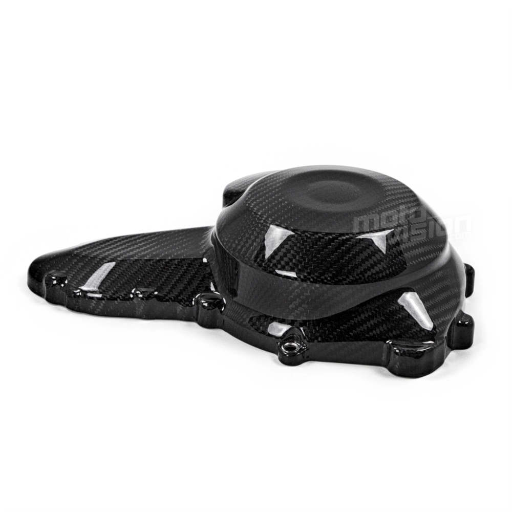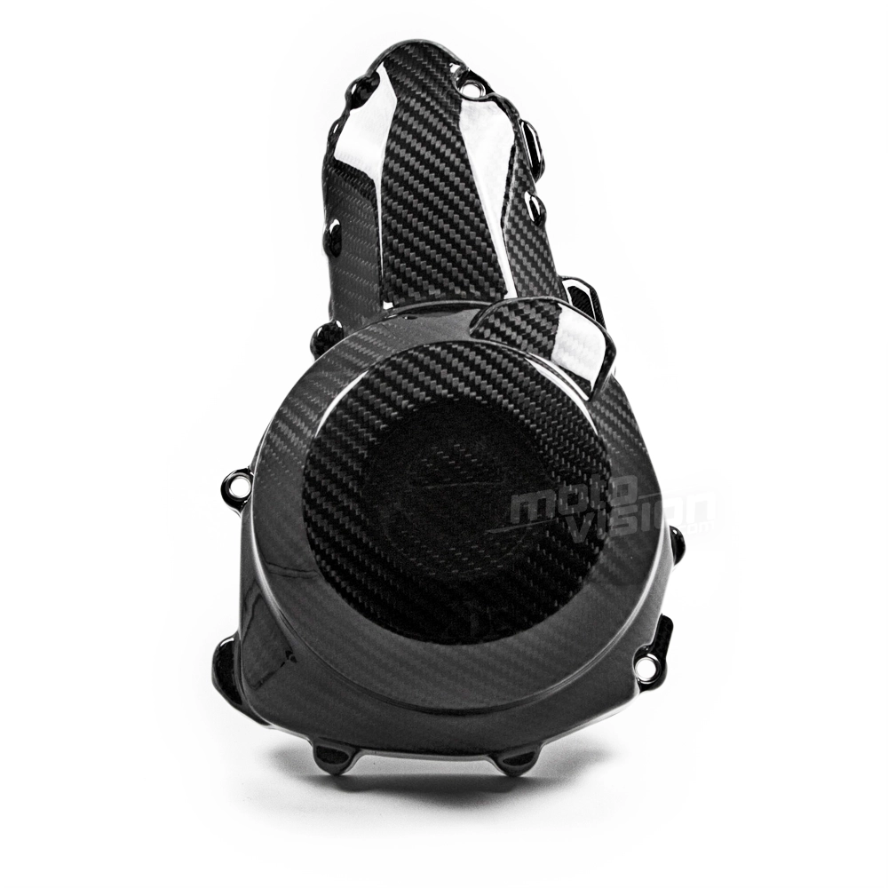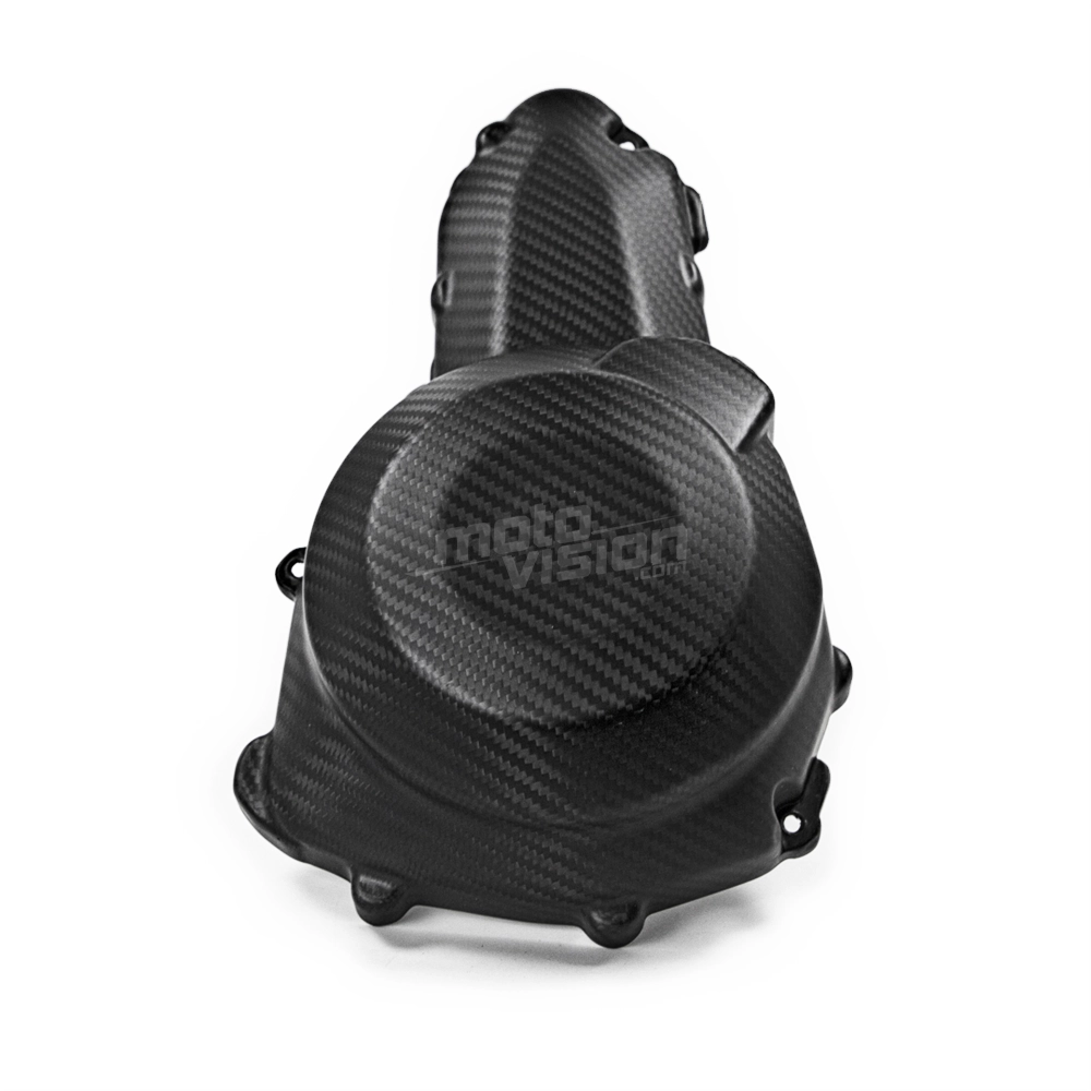 Cache carter d'alternateur Kawasaki Z650/Ninja 650 2017-2021, livré sans visserie ou autres fixations. Les perçages sont déjà effectués sur les carénages moto en carbone.