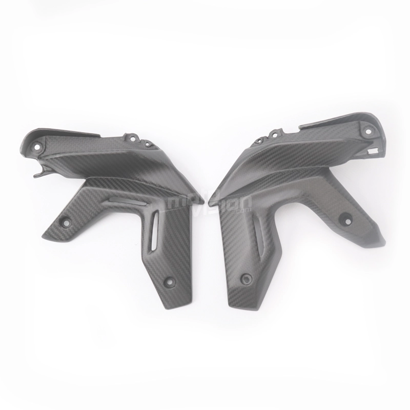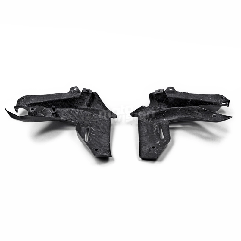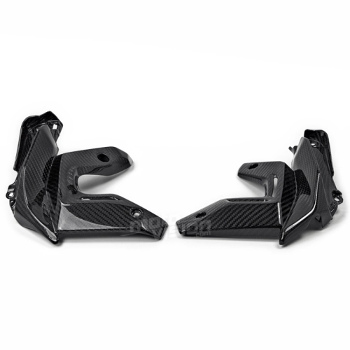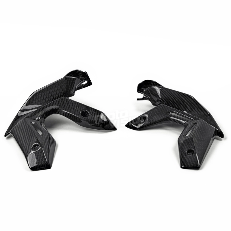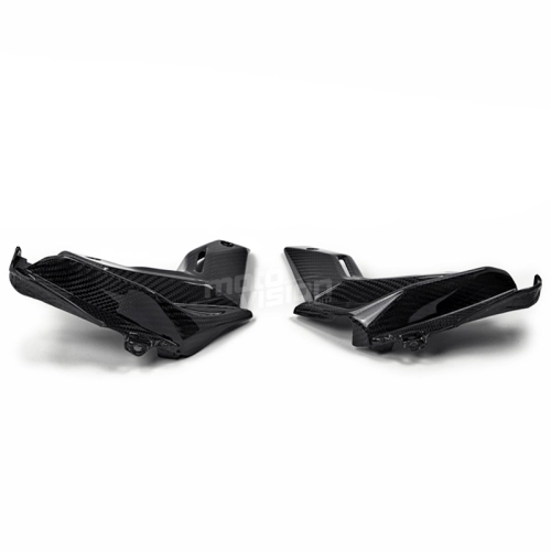 Caches sur radiateur Carbone Kawasaki Z650 2020-2021, livré sans visserie ou autres fixations. Les perçages sont déjà effectués sur les carénages moto en carbone.