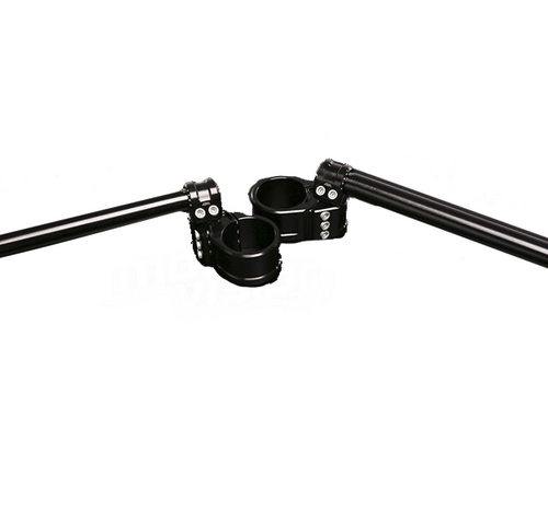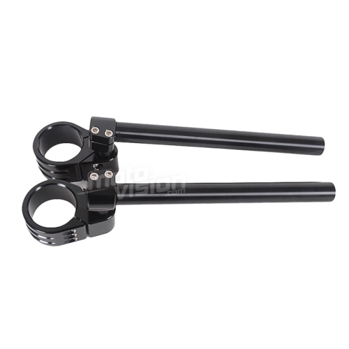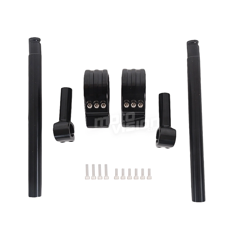 Ces bracelets de demi-guidons en aluminium noir sont taillés dans la masse, de diamètre 50 ou 55 mm très légers et très robustes. Réglables en hauteur jusqu'à 20mm, ils vous permettent de choisir la position idéale de votre guidon.