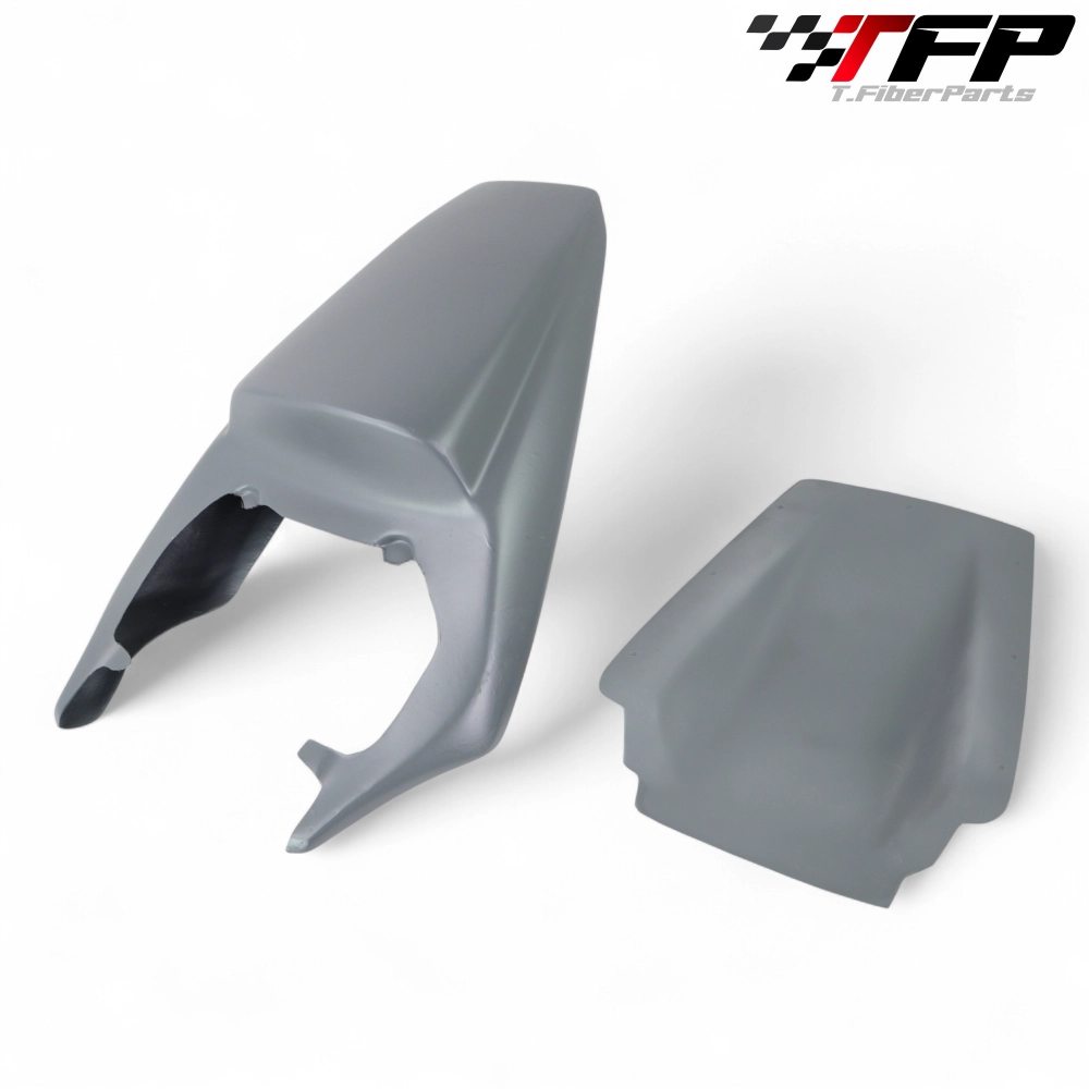- 2 propositions pour les coques arrière : 1 coque fermée pour rouler sur la piste avec collage d'une mousse de selle ou 1 coque qui conserve la selle d'origine pour la plupart des motos