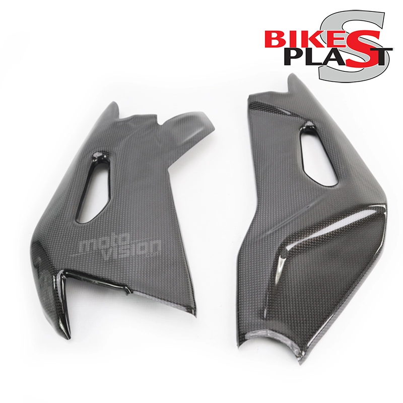 Les protections de cadre et de bras oscillant GO2RACE en carbone véritable offrent à votre moto une protection anti gravillons en cas de chute.