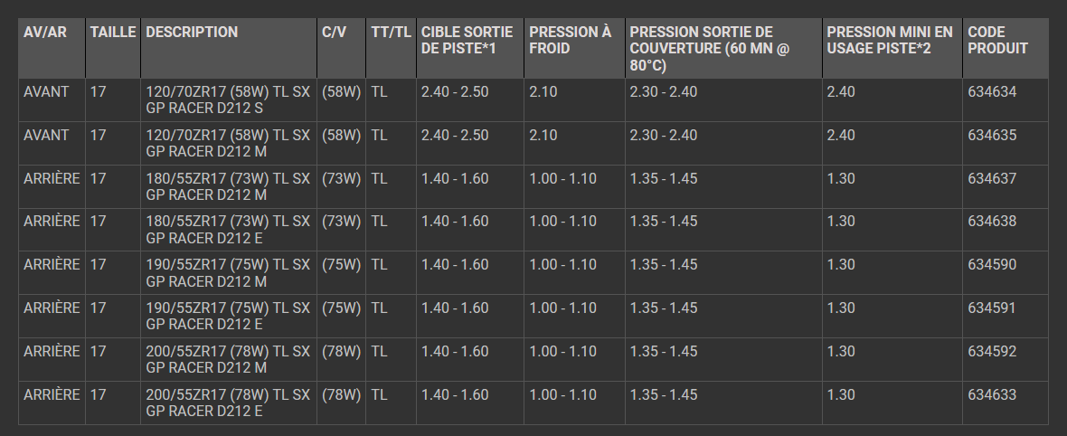- Télécharger : Pression pneus Motorsport 2023.pdf