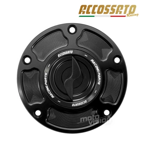 Impossible de passer une journée sur un circuit sans voir sur une moto des accessoires Accossato, marque italienne réputée pour sa haute qualité de pièces moto. Le bouchon de réservoir racing Accossato 1/4 tour en aluminium taillé masse vous garantit une installation simple et rapide grâce à toute la visserie et les joints nécessaires au montage de la trappe sur votre moto.
