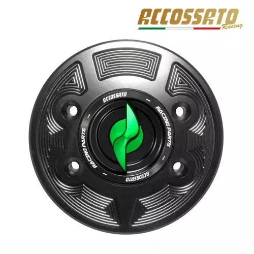 Le bouchon de réservoir racing Accossato 1/4 tour en aluminium taillé masse est particulièrement adapté aux motos sportives avec son ouverture en dégagement rapide sans clef. Le produit est livré avec le nécessaire de montage (visserie et joint) pour une installation rapide et facile. Il existe 6 coloris différents : bleu, rouge, vert, noir, or et argent.