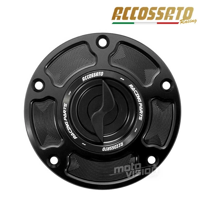 Impossible de passer une journée sur un circuit sans voir sur une moto des accessoires Accossato, marque italienne réputée pour sa haute qualité de pièces moto. Le bouchon de réservoir racing Accossato 1/4 tour en aluminium taillé masse vous garantit une installation simple et rapide grâce à toute la visserie et les joints nécessaires au montage de la trappe sur votre moto.