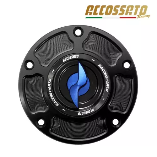 Le bouchon de réservoir racing Accossato 1/4 tour en aluminium taillé masse est particulièrement adapté aux motos sportives avec son ouverture en dégagement rapide sans clef. Le produit est livré avec le nécessaire de montage (visserie et joint) pour une installation rapide et facile. Il existe 6 coloris différents : bleu, rouge, vert, noir, or et argent.