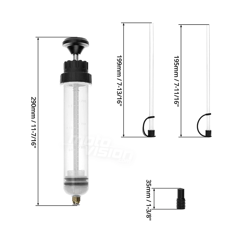 Extracteur de carburant, huile, liquide de refroidissement ou encore d'antigel pour retirer facilement les fluides et connaître la quantité exacte de liquide nécessaire. La pipette est livrée avec deux flexibles. Elle est transparente afin d'assurer un meilleur contrôle de la quantité d'extraction.