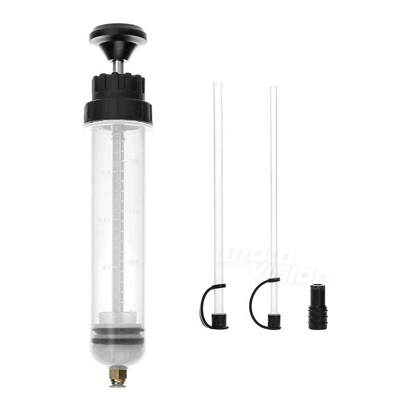 Extracteur de carburant, huile, liquide de refroidissement ou encore d'antigel pour retirer facilement les fluides et connaître la quantité exacte de liquide nécessaire.