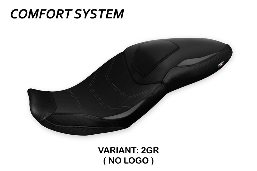 - Confort system : Ce revêtement est à l'extérieur exactement identique à tous les autres couvercles, mais est couplé à l'intérieur avec une couche spéciale de 2,5 cm de mousse à mémoire de forme. Tappezzeria Italia est le seul fabricant a utilisé la technologie de la Memory Foam qui permet d'améliorer le confort de conduite en réduisant la fatigue et les vibrations de la moto.