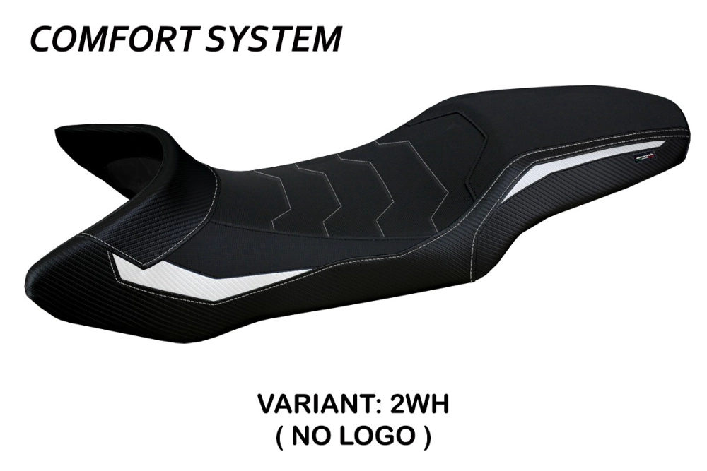 - Confort system : Ce revêtement est à l'extérieur exactement identique à tous les autres couvercles, mais est couplé à l'intérieur avec une couche spéciale de 2,5 cm de mousse à mémoire de forme. Tappezzeria Italia est le seul fabricant a utilisé la technologie de la Memory Foam qui permet d'améliorer le confort de conduite en réduisant la fatigue et les vibrations de la moto.