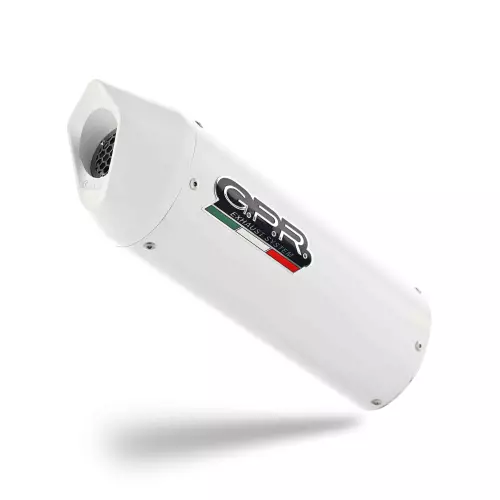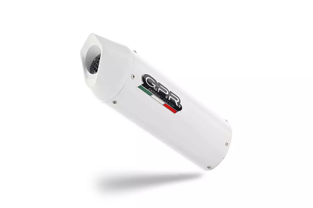 La série de silencieux ALBUS de GPR est dotée d'un corps en aluminium et de capuchons Avional usinés CNC. L'échappement bénéficie d'un traitement céramique, capable de résister à des températures élevées. Il a une forme elliptique avec des mesures de 90 x 120 MM. Plus légère que l'échappement d'origine, une ligne d'échappement GPR permet également une hausse significative des performances, sans compter un gain de poids.