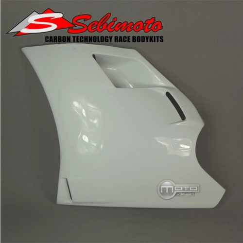 Flanc Gauche complet poly Sebimoto Ducati 748 916 996 en fibre de verre tressée avec renforts kevlar. Le produit se monte facilement sur votre moto grâce au repérage des emplacements de perçage et une bonne finition du carénage.