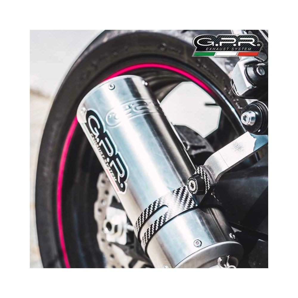 GPR a développé le M3 Titanium après les victoires au Championnat du Monde Moto3. Fabriqué en véritable titane brossé à la main, il possède une grille de course amovible et une forme ronde d'un diamètre de 100 mm. Plus légère que l'échappement d'origine, une ligne d'échappement GPR permet également une hausse significative des performances, sans compter un gain de poids.