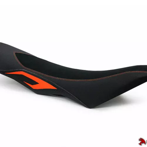 Couvre selle KTM 690 Enduro R SMC -R de très grande qualité, fabriquée au Canada. La marque conçoit des produits avec une superbe finition : broderies détaillées, vinyl de type marine, tissu style carbone ou encore cuir type Suède de qualité supérieure... Le design et les couleurs sont personnalisables afin de s'accorder au mieux au look de votre moto.