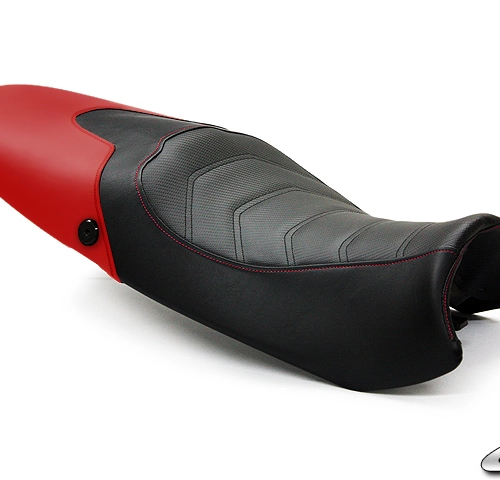 Couvre selle Triumph Speed Triple 08-10 de très grande qualité, fabriquée au Canada. La marque conçoit des produits avec une superbe finition : broderies détaillées, vinyl de type marine, tissu style carbone ou encore cuir type Suède de qualité supérieure... Le design et les couleurs sont personnalisables afin de s'accorder au mieux au look de votre moto.