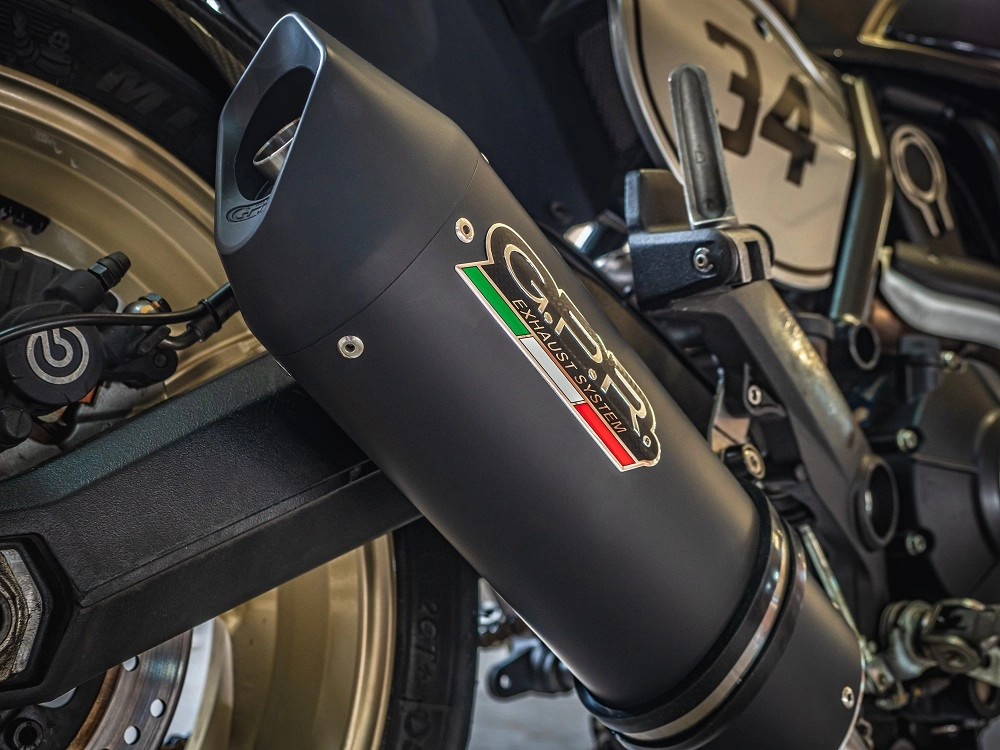 Le silencieux Furore Nero de GPR a un corps en aluminium noir, avec des capuchons avioniques fabriqués par usinage CNC. Il présente une finition en céramique qui résiste aux températures élevées, avec une forme elliptique mesurant 90 mm x 120 mm. Plus légère que l'échappement d'origine, une ligne d'échappement GPR permet également une hausse significative des performances, sans compter un gain de poids.