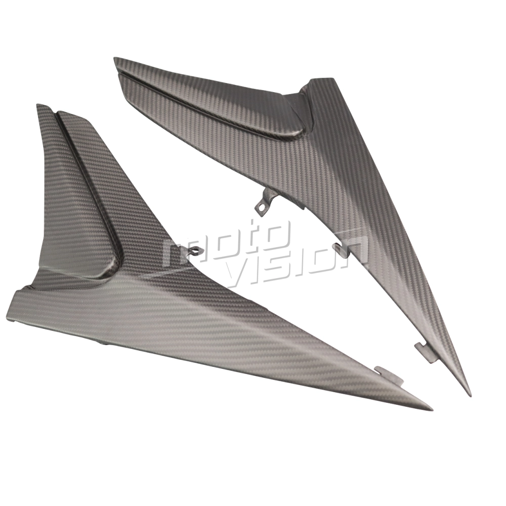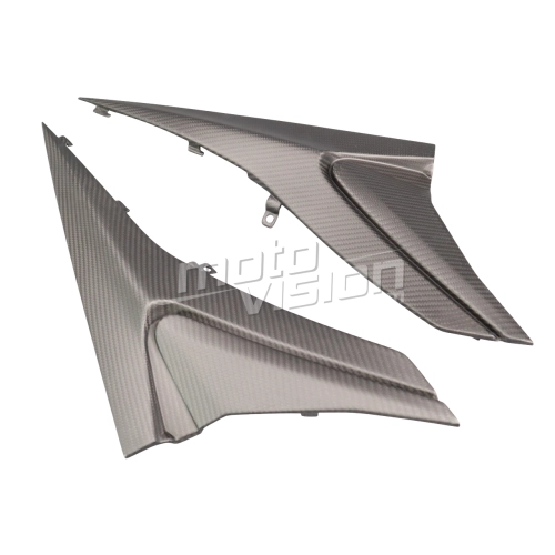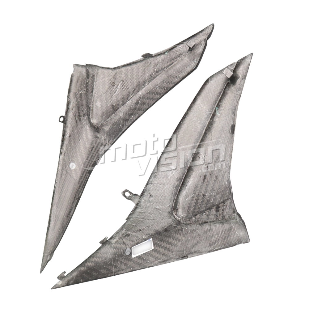 Caches sous selle carbone Aprilia RS660 2020-, livré sans visserie ou autres fixations. Les perçages sont déjà effectués sur les carénages moto en carbone.