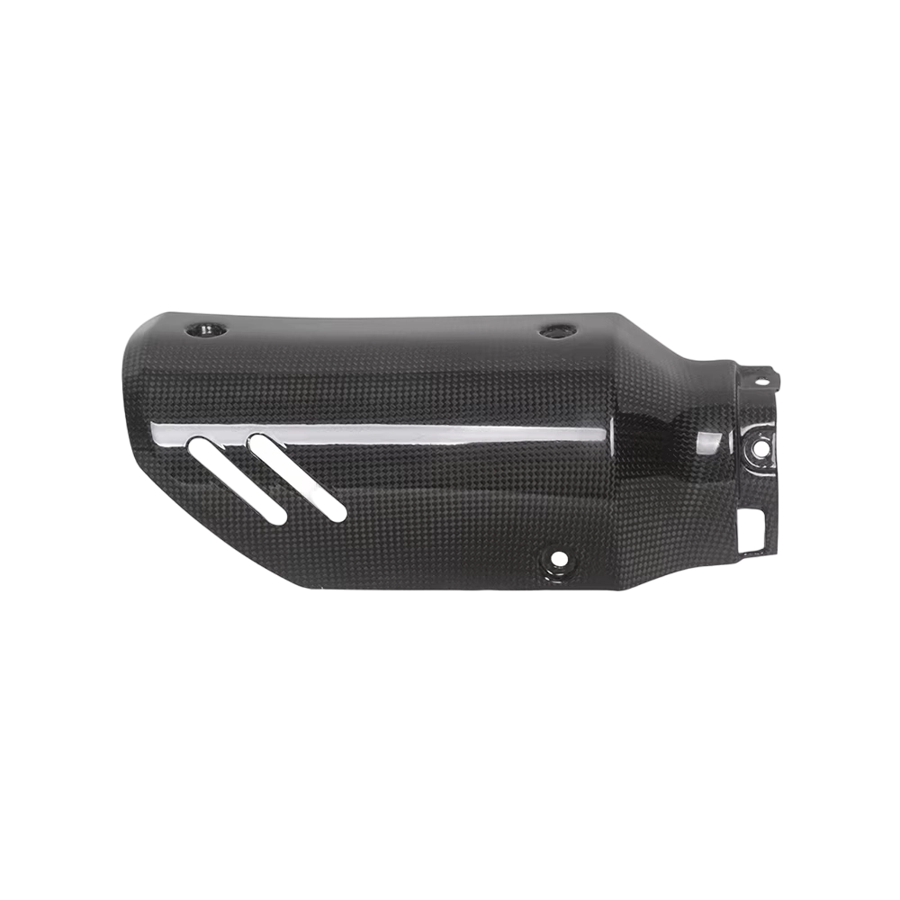 Protection d'échappement carbone Ducati DesertX 2022- en carbone véritable, à monter directement sur votre moto. Ce carénage en carbone vous offre plusieurs avantages :
