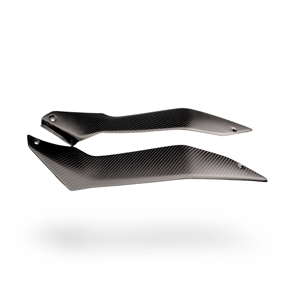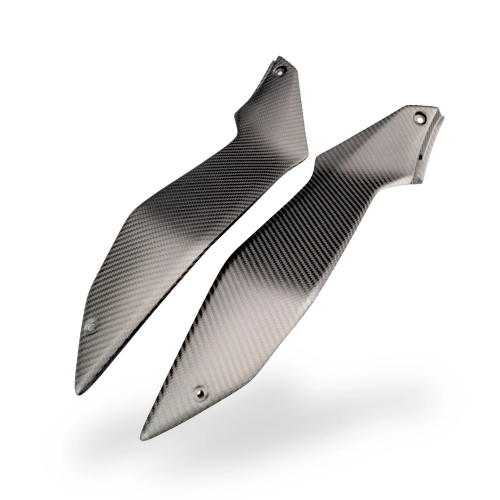 Ecopes de réservoir carbone Kawasaki Z-H2 2020- à monter directement sur les points de fixation d'origine de votre moto en remplacement du carénage d'origine. Les pièces en carbone sont livrées sans visserie.