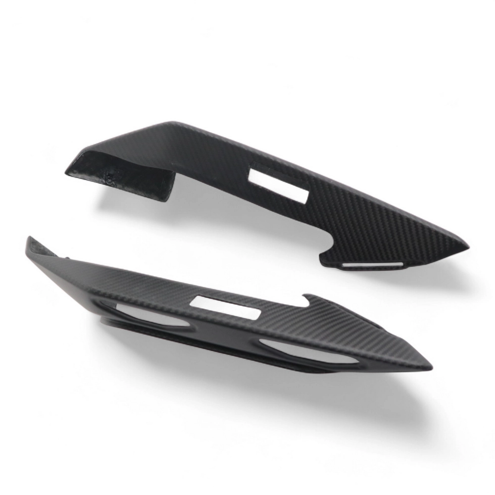 Ecopes latérales carbone KTM 1290 Super Duke GT 2019-2022, livré sans visserie ou autres fixations. Les perçages sont déjà effectués sur les carénages moto en carbone.